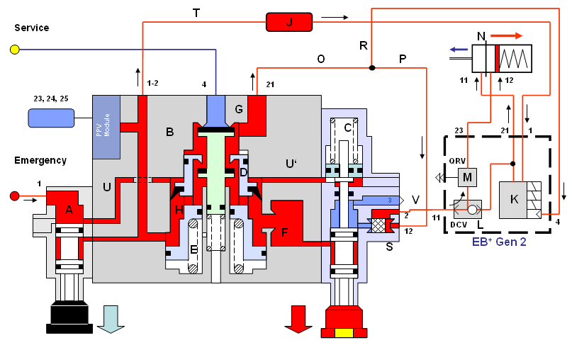 | Betriebsbremsen | Federspeicherbremsen | DCV (Zweiwegeventil) |