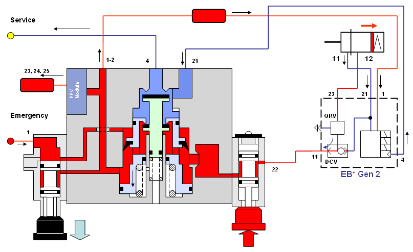 | Betriebsbremsen | Federspeicherbremsen | DCV (Zweiwegeventil) |