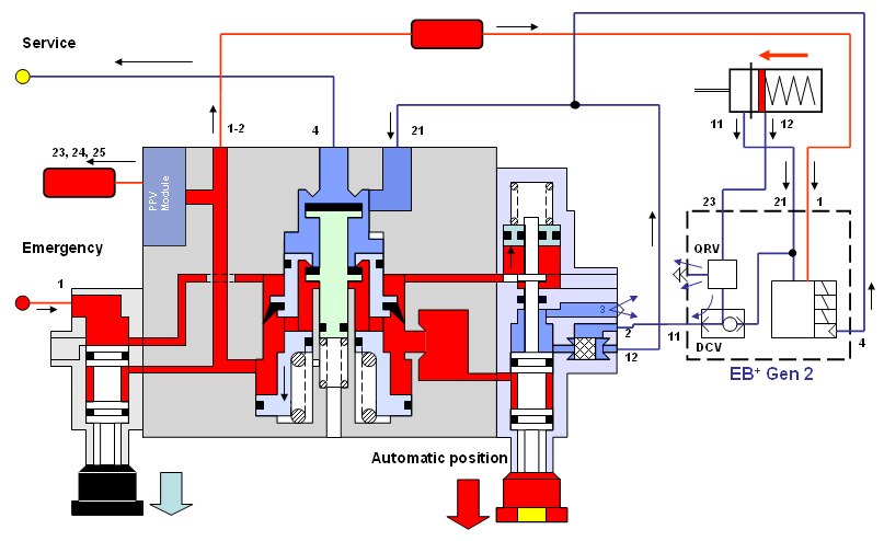 | Frein de service | Frein de stationnement | DCV (Valve anti-addition des efforts) |
